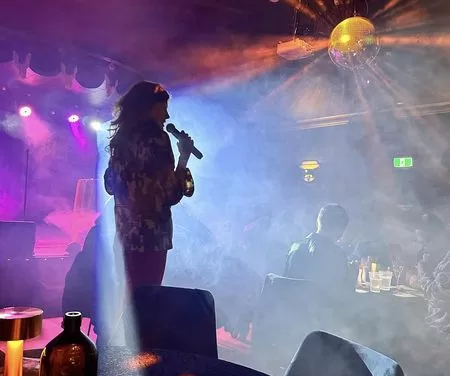 Raquel Stevens chats with Dolly Adamson, MC of Disco Bingo at the Palais-Hepburn.