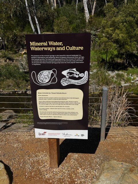 New features include a Yarning Circle, a Nature Appreciation Space, and interpretive artworks created by Djaara artists. Around the mineral spring pumps, visitors can see striking new inlaid designs that symbolise the ongoing relationship between people and Country.