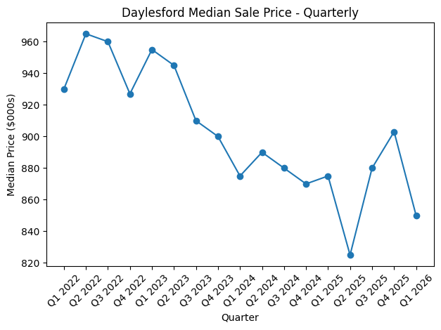 Yet context matters. Even with this pullback, Daylesford remains well above the regional Victorian median of $672,000, underlining its continued appeal as a lifestyle destination rather than a purely affordable market.