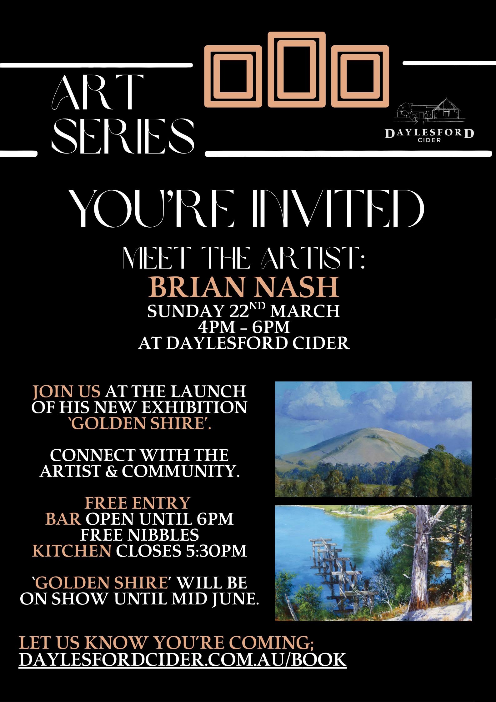 Brian Nash at Daylesford Cider Launch Date Mar 22 2026 Time 4:00 pm - 6:00 pm Location Daylesford Cider Company 155 Dairyflat Road, Musk VIC 3461 Website https://daylesfordcider.com.au/ Category Free and Open Share this event