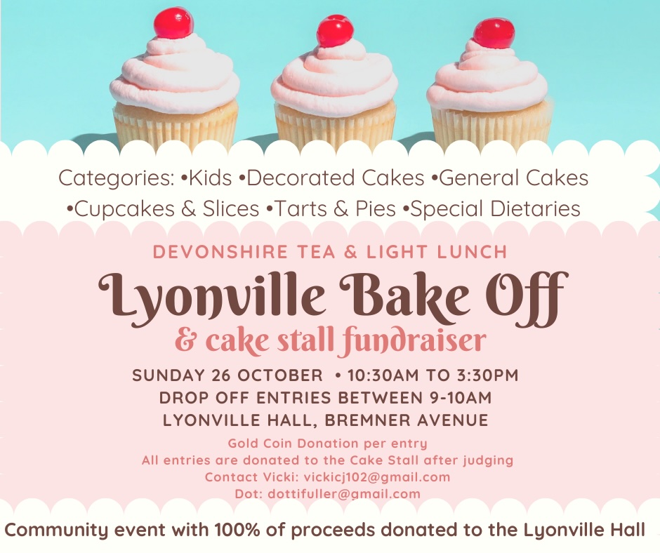 The ovens are warming and the mixing bowls are out – the 2025 Lyonville Bake Off is set to be the most exciting yet! Join the fun on Sunday 26 October from 10:30am to 3:30pm at Lyonville Hall, Bremner Avenue, for a day filled with delicious treats, community cheer, and country creativity.