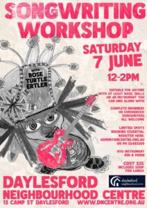 Rose is an experienced songwriter and performer known for her fun, inclusive workshops that encourage everyone to have a go. To see some of her work, visit her website.