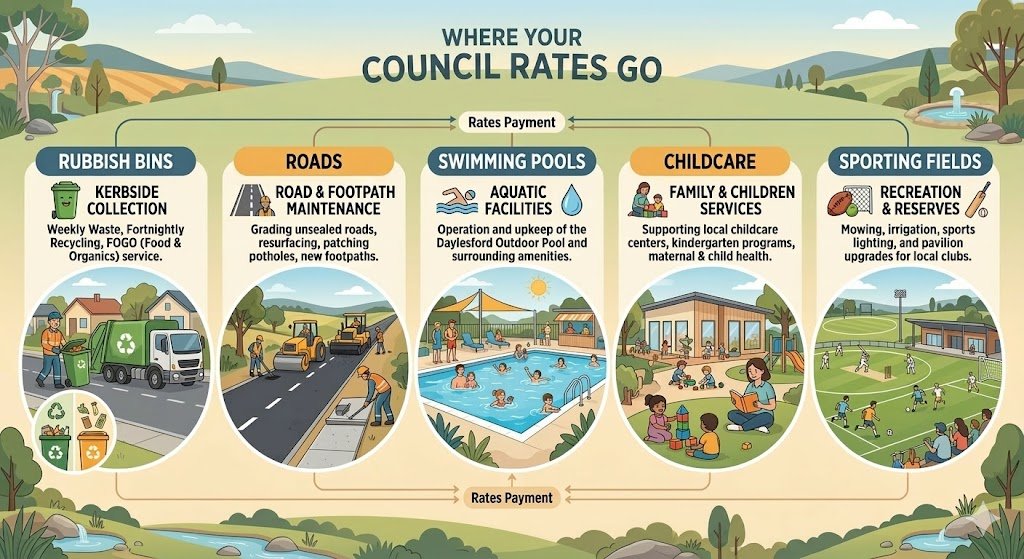 This first article looks at a simple but important question: what do Hepburn residents actually pay in municipal rates, what appears on their rates notice, and how might those charges change if council boundaries were redrawn?