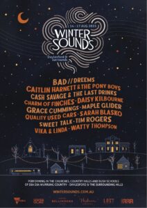 In 2025, Winter Sounds will include live performances from Bad//Dreems, Caitlin Harnett & The Pony Boys, Cash Savage & The Last Drinks, Charm of Finches, Daisy Kilbourne, Grace Cummings, Maple Glider, Quality Used Cars, Sarah Blasko, Sweet Talk, Tim Rogers, Vika and Linda, and Watty Thompson.
