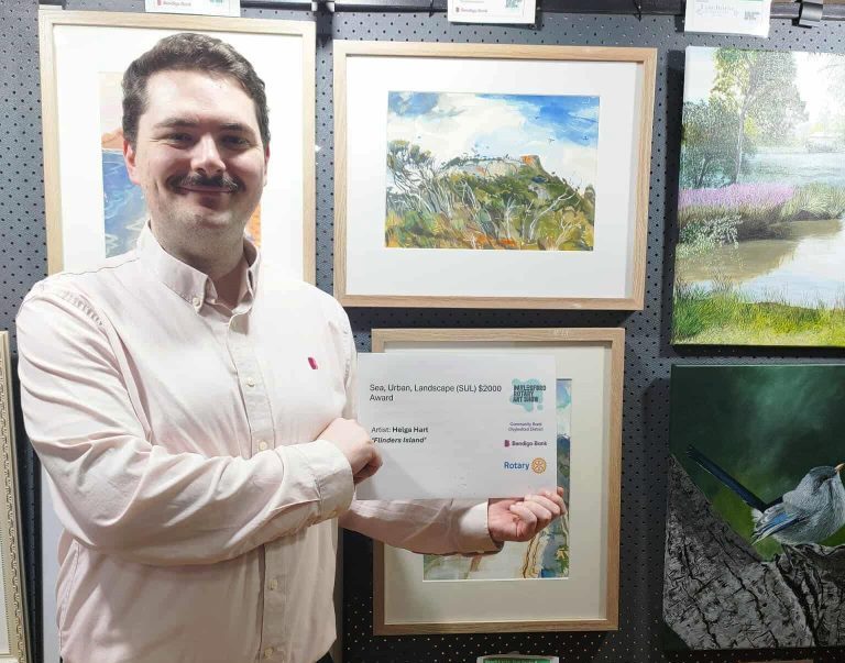 Opening night of the Daylesford Rotary Art Show proved to be a very successful start to the exhibition, with strong attendance and a lively atmosphere. Artists received $10,000 in prizes donated by local businesses and philanthropists.